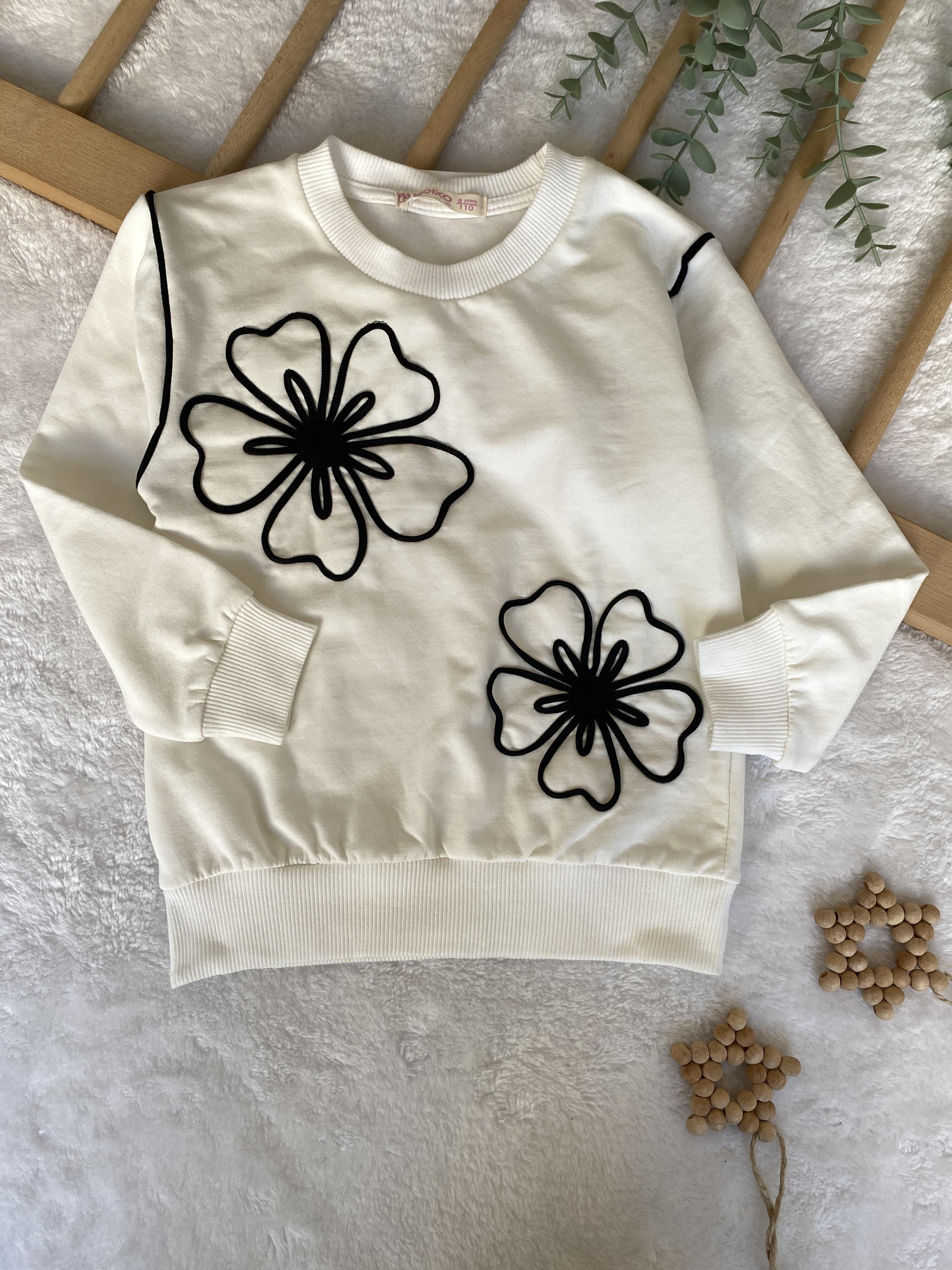 Beyaz Çiçek Detaylı Sweat