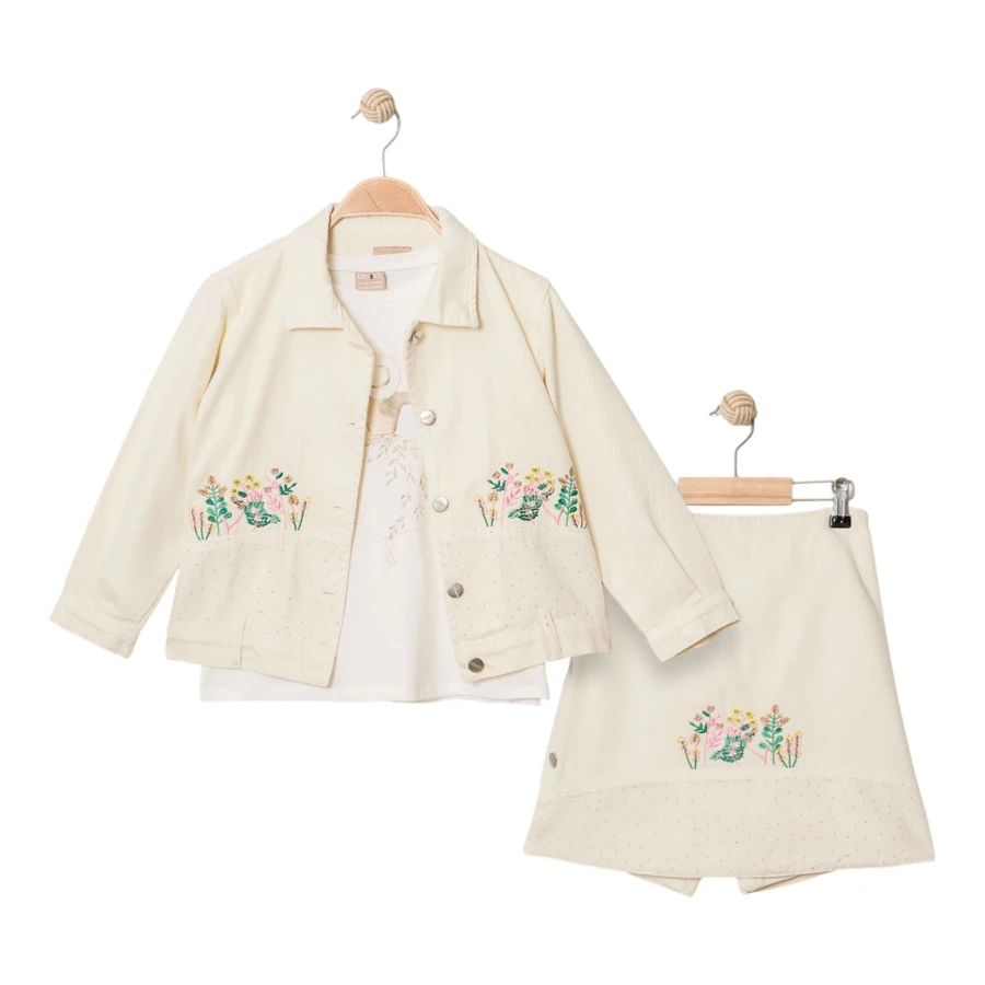 Ceketli Şort Etek 3lü Takım Krem