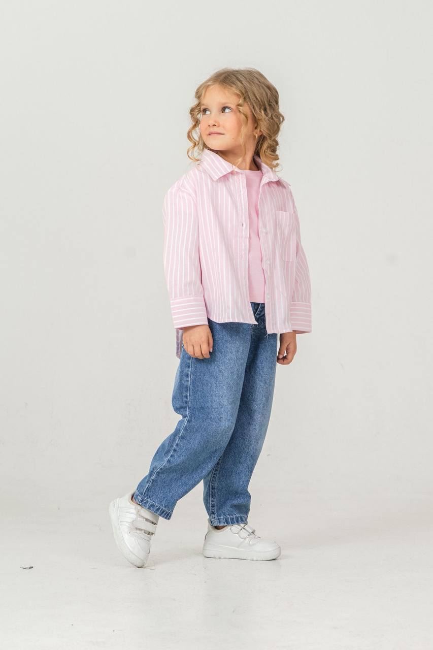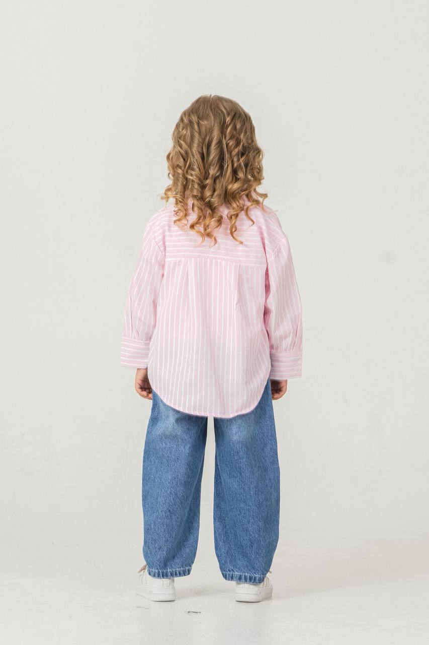 Pembe çizgili poplin gömlekli takım
