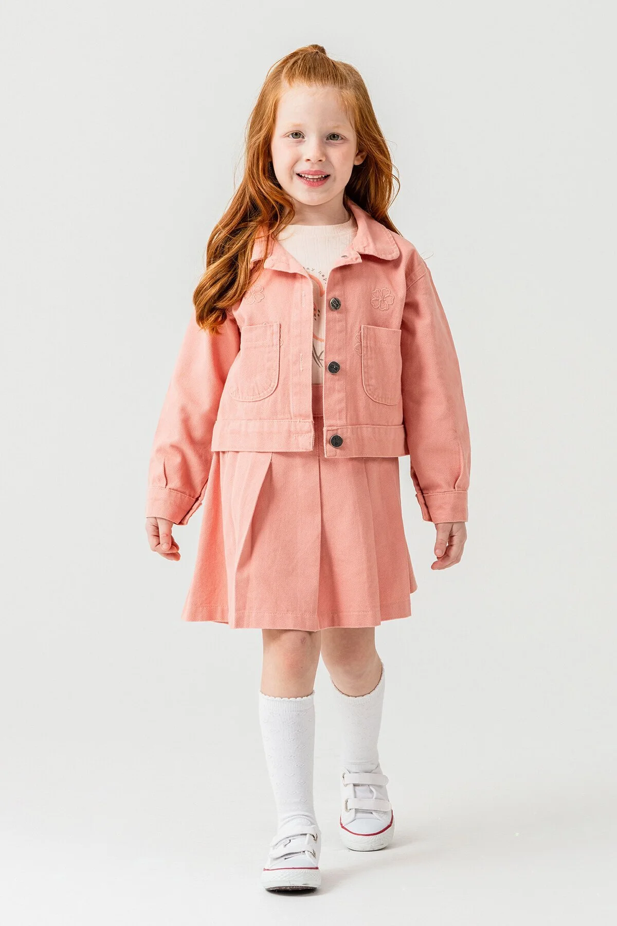 Set içeriği:Uzun kollu badi,jean ceket ve pileli etek olarak 3lü takımdır.