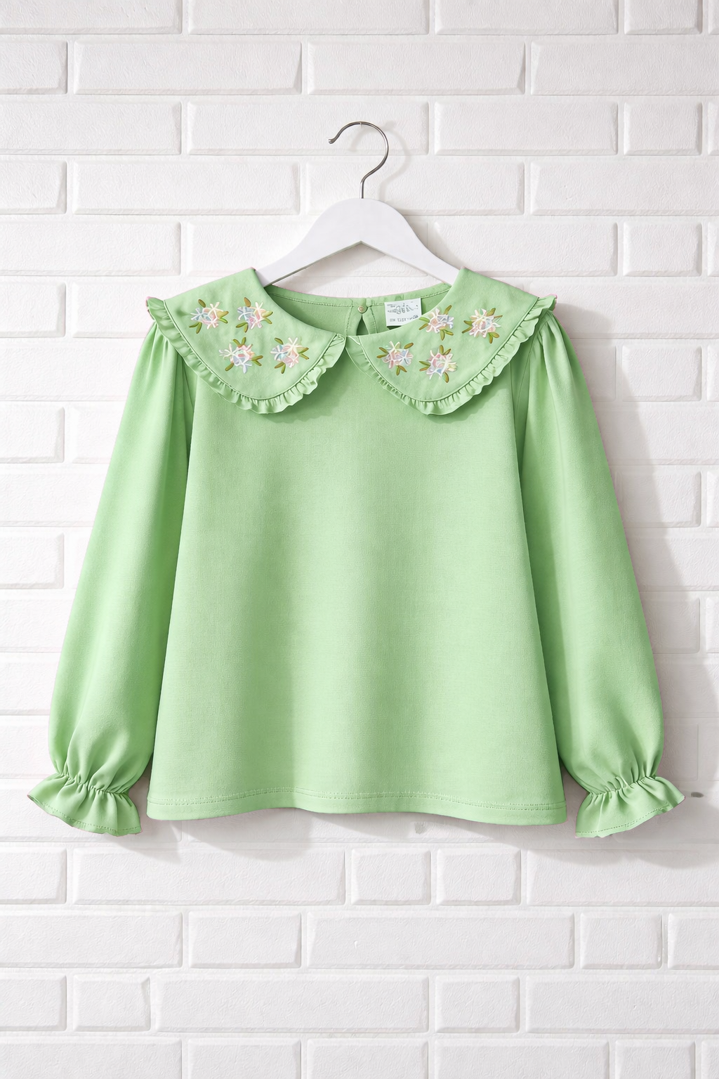 Yeşil Yakası Nakışlı Likralı Bluz